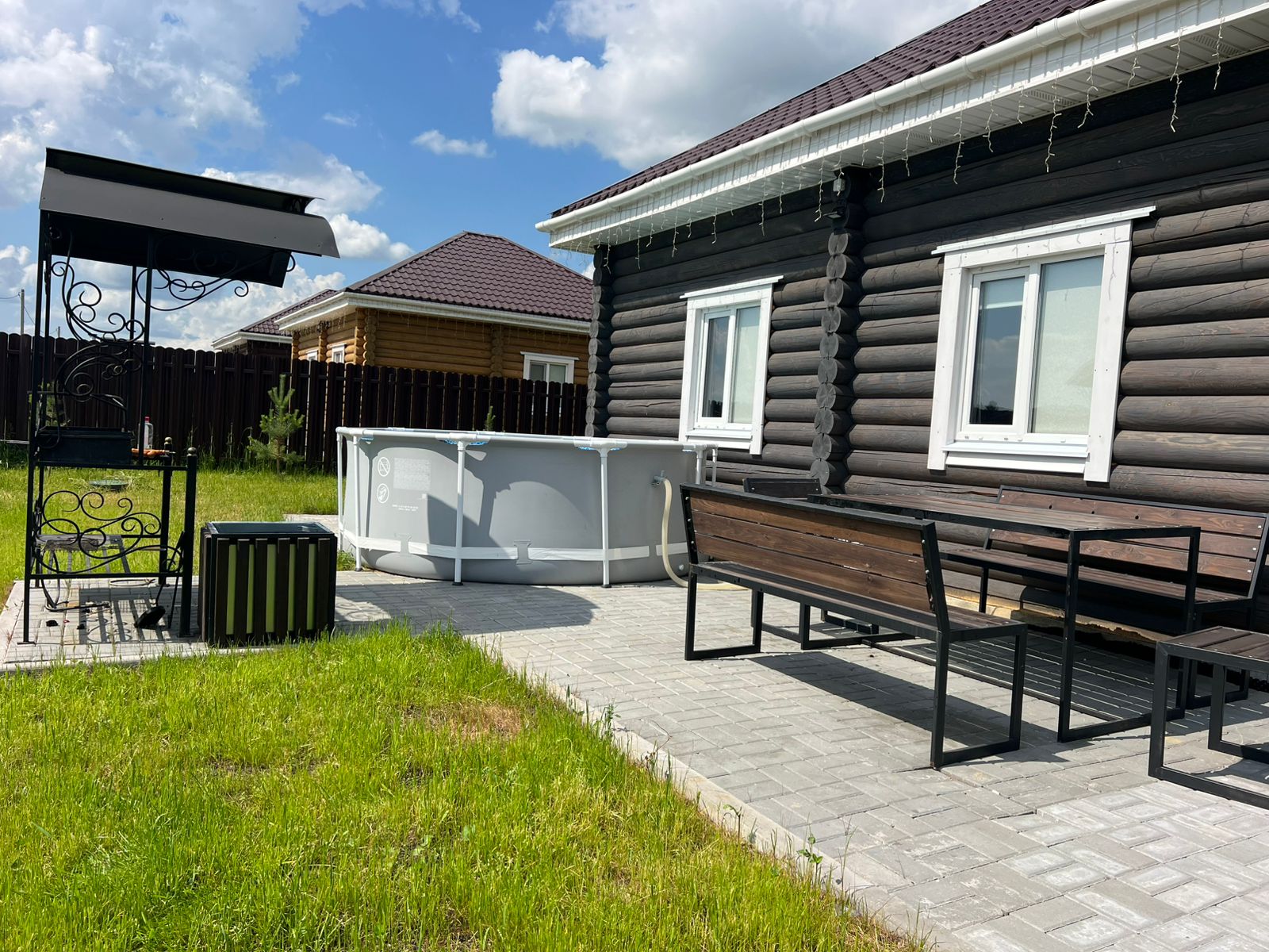 * 4 домика с мангалом под навесом и садовой мебелью на территории